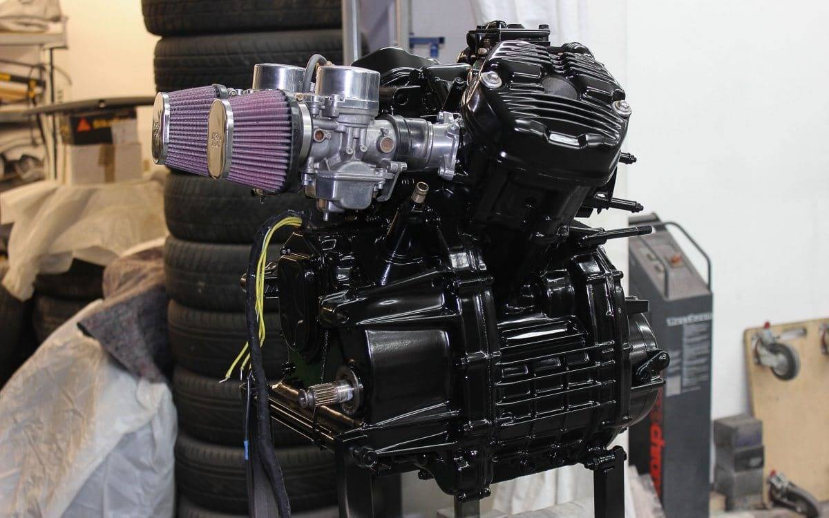 Der Motor meiner CX 500 wurde soda-gestrahlt und schwarz lackiert (Quelle: Julian Banzhaf)