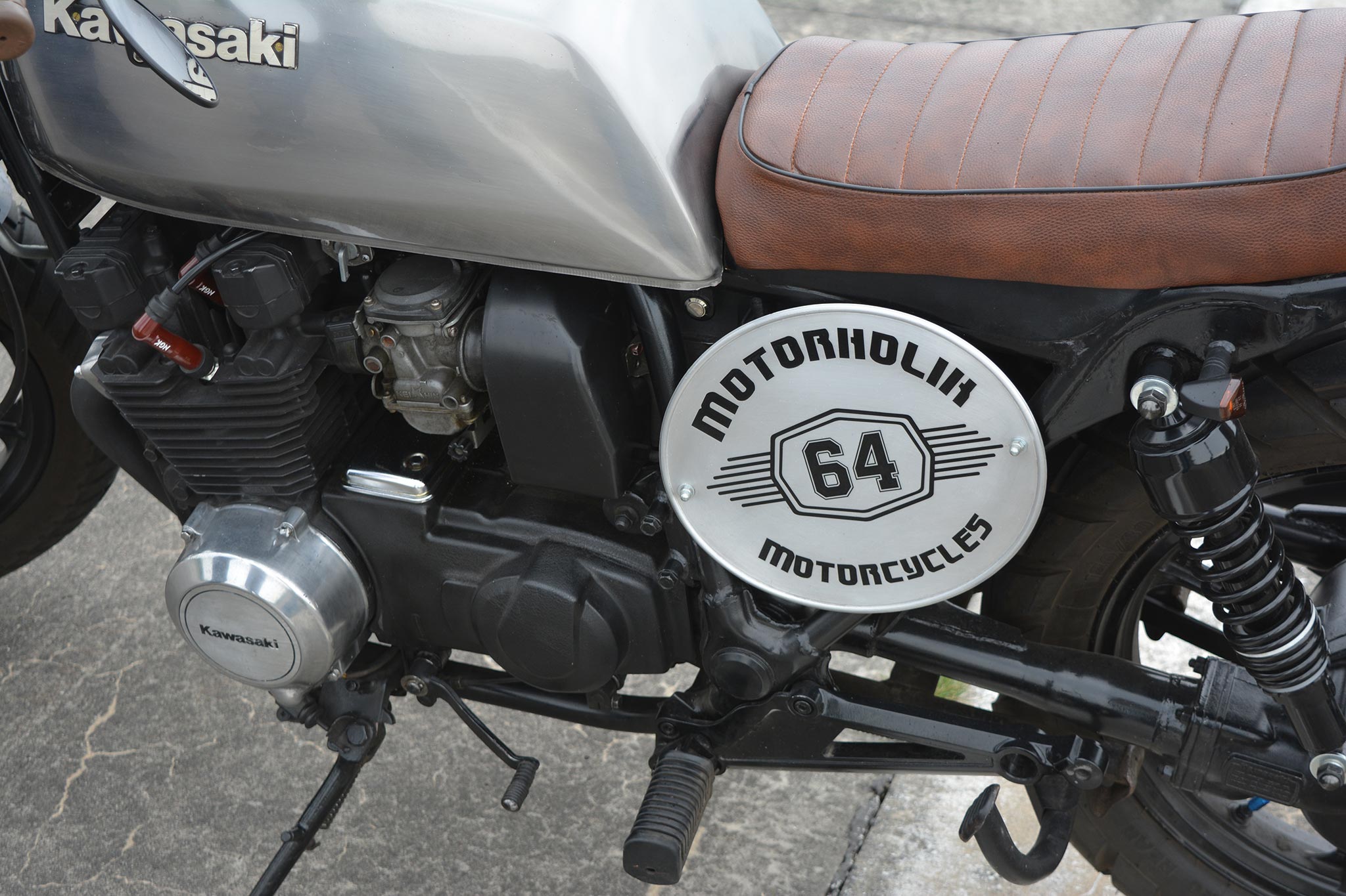 Mit der GT 550 Street-Scrambler ist ein schlichtes und einfaches Bike entstanden, das sich unfassbar geschmeidig auf der Straße bewegen lässt. Die Jungs von Motorholik optimierten das Fahrwerk der Kawa, änderten etwas die Sitzposition und verpassten der GT 550 einen neuen Lenker mit geringer Kröpfung. Alle Maßnahmen verbesserten die Fahreigenschaften so stark, dass die GT 550 Street-Scrambler es in Puncto „Agilität“ mit jeder aktuellen Supermoto aufnehmen kann.