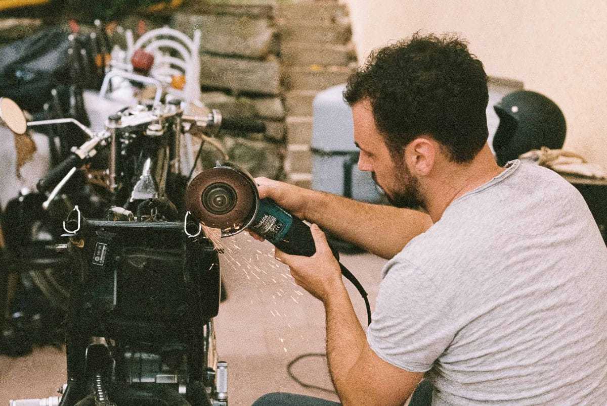 Das mit den Cafe Racern hat auch einen witzigen Ursprung bei mir. Als meine Schwester in der Toskana geheiratet hat sind wir in einer Altstadt an einem Café vorbeigestolpert, das kleine Motorrädermodelle im Schaufenster hatte. Und da war eins, das hat mich so fasziniert, dass ich es dem Besitzer direkt abgekauft und mir ins Zimmer gestellt habe. Dieser lange Tank, der kurze Sitz und die alten Speichenfelgen, Nummerntafel vorne dran, das fand ich einfach cool.