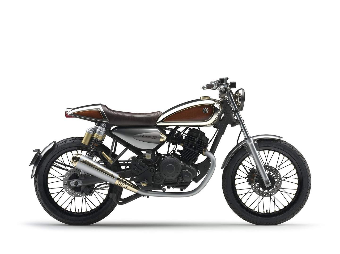 Die Resonator 125 ist ein neues Konzeptmodell von Yamaha, welches jungen Menschen, die bislang noch nicht den besonderen Reiz des Motorradfahrens für sich entdecken konnten, Lifestyle und authentisches Sportbike-Feeling vermitteln soll. Mit seinem leichten, schlanken und kompakten Fahrwerk sowie seinem innovativen Cockpit verbindet dieses Modell moderne Elemente der nahen Zukunft mit nostalgischen Elementen der Vergangenheit und läutet damit eine neue Motorrad-Ära ein. Der Kraftstofftank ist mit Holzelementen verziert, und die Sitzverkleidung besteht aus einem Material mit authentischer Holzmaserung, so wie man es aus der Gitarrenproduktion kennt. Die Gravuren auf Schalldämpfer, Kraftstofftankdeckel und anderen Teilen wurden mit der gleichen aufwändigen Technik und Sorgfalt ausgeführt, wie sie bei Yamaha Blechblasinstrumenten zum Einsatz kommt. Das Ergebnis ist ein Motorrad, das junge Menschen mit Konzepten und Qualitäten inspirieren soll, die nur die Marke Yamaha bieten kann.