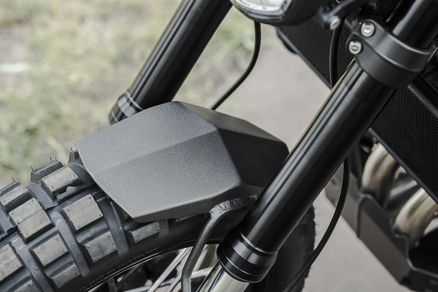 Für den perfekten Sound und Offroad-Optik des ‚Monkeebeasts‘ sorgt die von SC Project gefertigte Auspuffanlage. Die Fender vorn und hinten sind wie der Unterfahrschutz aus Aluminium und pulverbeschichtet.