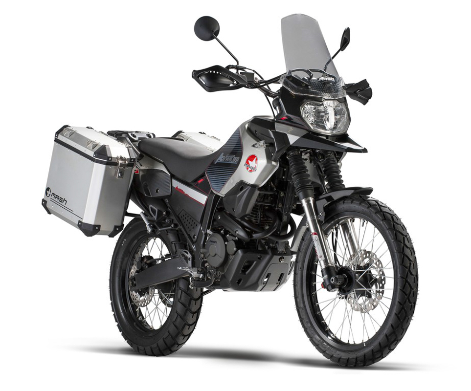 Bereits im Sommer 2015 erschien die Reiseenduro Adventure 400, mit der Mash die bislang eingeschlagene Retro-Welle verlassen hat. Die modern gestaltete Enduro wird von demselben 27 PS starken Einzylindermotor wie die Five Hundred angetrieben, der eng an eine Honda-Konstruktion angelehnt ist.