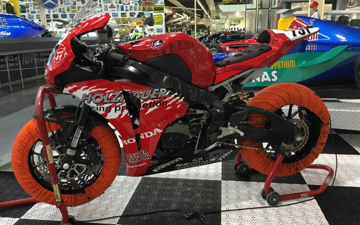 Das AUTO & TECHNIK MUSEUM SINSHEIM hat die Formel-1-Sammlung um ein rasantes Ausstellungsstück – das IDM-Superbike Honda CBR 1000 RR – erweitert. Kein geringerer als Formel-1-Legende Michael Schumacher startete auf diesem Motorrad für das Team Holzhauer Racing Promotion (HRP) aus Wittenberge im Rahmen eines Teamwettbewerbes in Oschersleben. „Ich hätte es nie für möglich gehalten, dass ein Autorennfahrer das Motorrad so schnell beherrscht“, so kommentierte Teamkollege Martin Bauer die Fahrkünste des Weltmeisters am 17. Mai 2008 gegenüber dem Nachrichtensender N24.