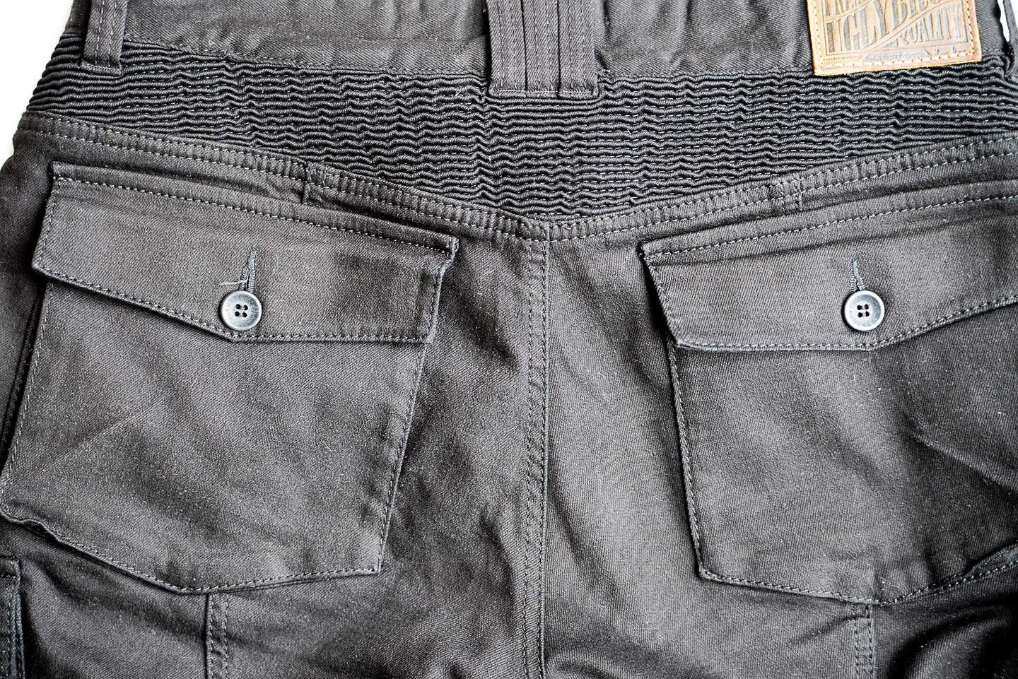 Praktisch ist die Hose zudem auch. Vier große, und mit Knöpfen verschließbare, Cargo-Taschen bieten ausreichend Platz für Schlüssel, Handy und Führerschein. Zusätzlich gibt es zwei Eingrifftaschen. Die erwähnten elastischen Elemente an den Knien und im Nierenbereich sorgen für Bequemlichkeit und peppen die Motorpool wirkungsvoll auf.
